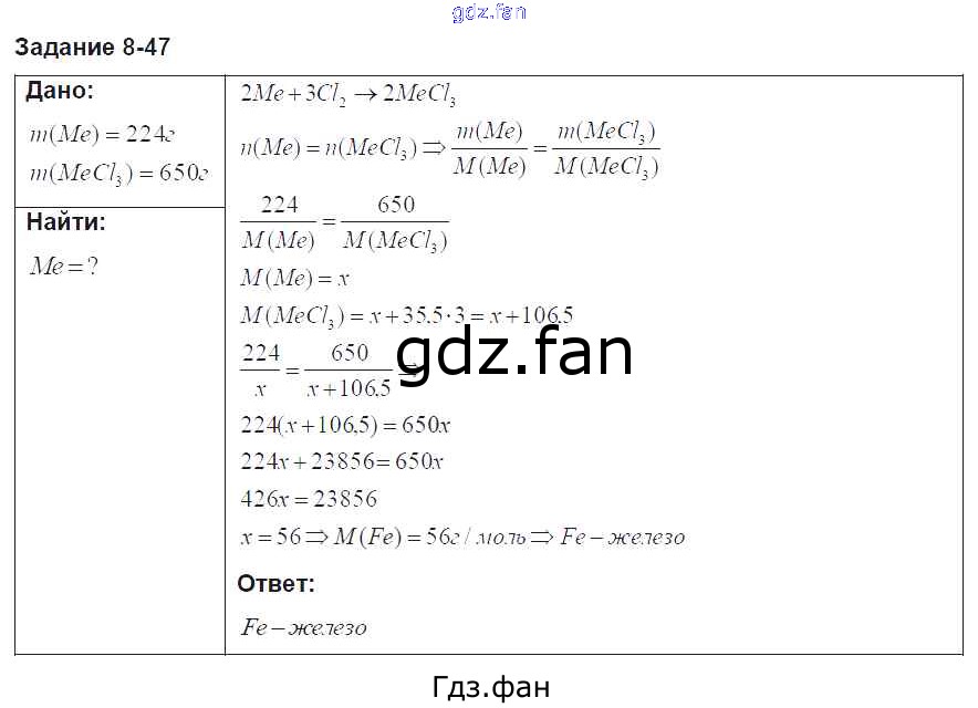Проверка домашнего задания всегда занимает большое количество времени. На помощь приходит ГДЗ фан по Химии восьмого класса. Здесь собраны популярные ответы на 8. 47 (стр. 100) Химия 8 класс задачник Кузнецова Н.Е.