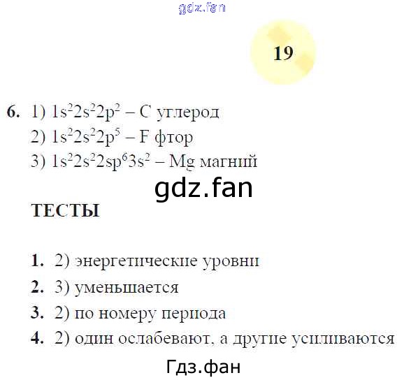 Проверка домашнего задания всегда занимает большое количество времени. На помощь приходит ГДЗ фан по Химии восьмого класса. Здесь собраны популярные ответы на 19 (№ 6. Тесты № 1, 2, 3, 4) Химия 8 класс рабочая тетрадь Микитюк А.Д. (к уч. Габриеляна О.С.)