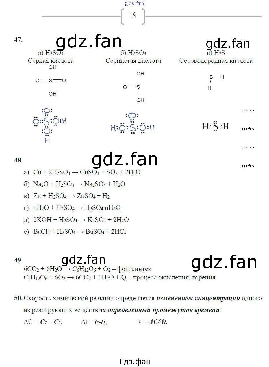 Проверка домашнего задания всегда занимает большое количество времени. На помощь приходит ГДЗ фан по Химии девятого класса. Здесь собраны популярные ответы на 19 (№ 47, 48, 49, 50) Химия 9 класс рабочая тетрадь Габрусева Н.И.
