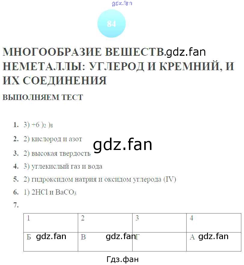 Проверка домашнего задания всегда занимает большое количество времени. На помощь приходит ГДЗ фан по Химии девятого класса. Здесь собраны популярные ответы на 84 (Многообразие веществ. Неметаллы: углерод и кремний, и их соединения. Выполняем тест № 1, 2, 3, 4, 5, 6, 7) Химия 9 класс тетрадь-тренажер Гара Н.Н.