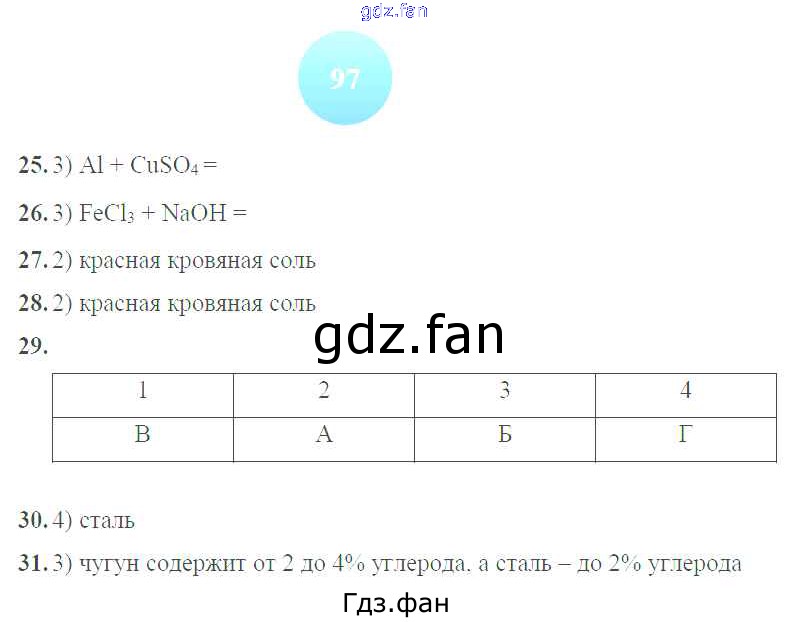 Проверка домашнего задания всегда занимает большое количество времени. На помощь приходит ГДЗ фан по Химии девятого класса. Здесь собраны популярные ответы на 97 (№ 25, 26, 27, 28, 29, 30, 31) Химия 9 класс тетрадь-тренажер Гара Н.Н.