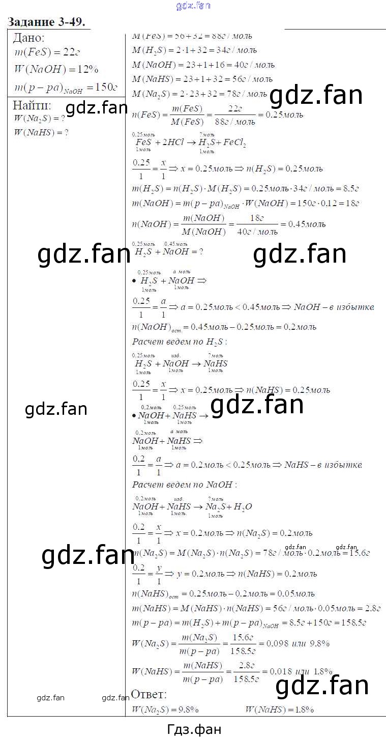 Проверка домашнего задания всегда занимает большое количество времени. На помощь приходит ГДЗ фан по Химии девятого класса. Здесь собраны популярные ответы на 3-49 (стр. 35) Химия 9 класс задачник Кузнецова Н.Е.