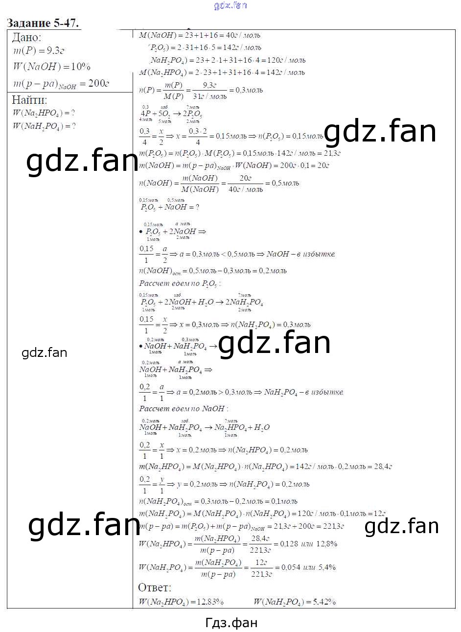 Проверка домашнего задания всегда занимает большое количество времени. На помощь приходит ГДЗ фан по Химии девятого класса. Здесь собраны популярные ответы на 5-47 (стр. 55) Химия 9 класс задачник Кузнецова Н.Е.