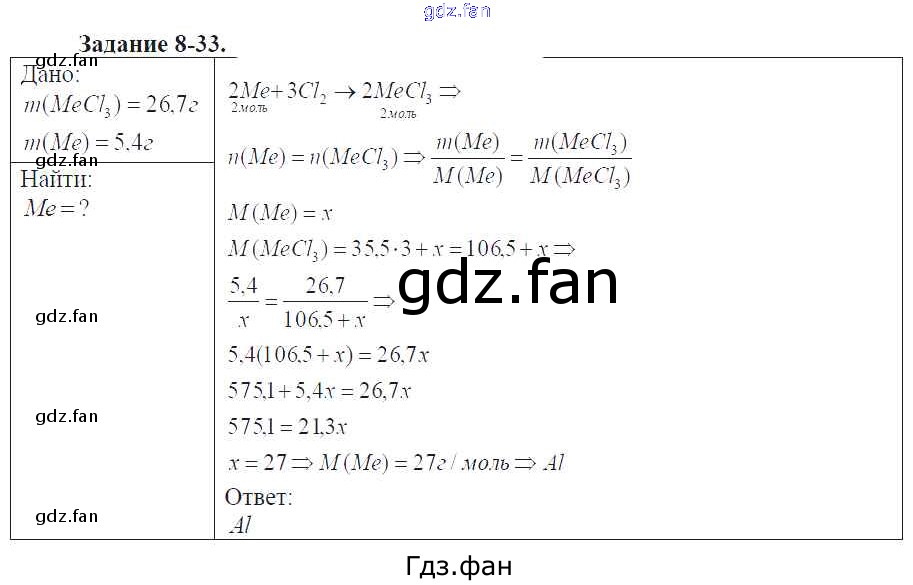 Проверка домашнего задания всегда занимает большое количество времени. На помощь приходит ГДЗ фан по Химии девятого класса. Здесь собраны популярные ответы на 8-33 (стр. 74) Химия 9 класс задачник Кузнецова Н.Е.