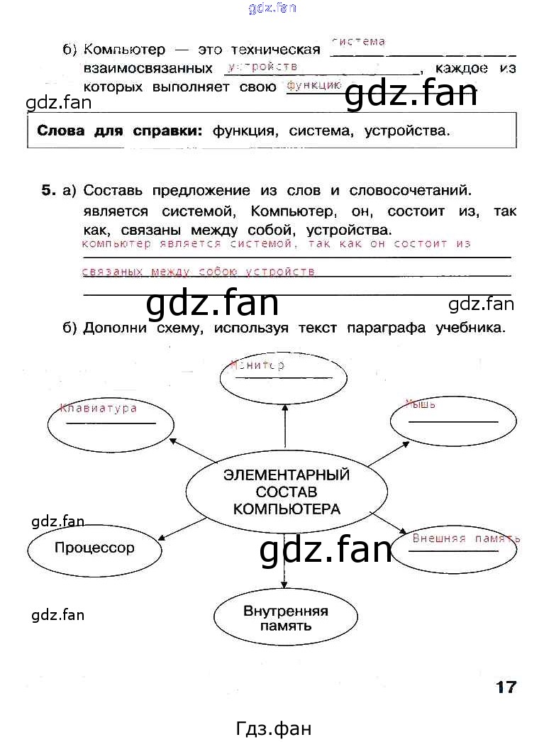 Проверка домашнего задания всегда занимает большое количество времени. На помощь приходит ГДЗ фан по Информатике третьего класса. Здесь собраны популярные ответы на 17 (задание 5) Информатика 3 класс рабочая тетрадь Матвеева Н.В.