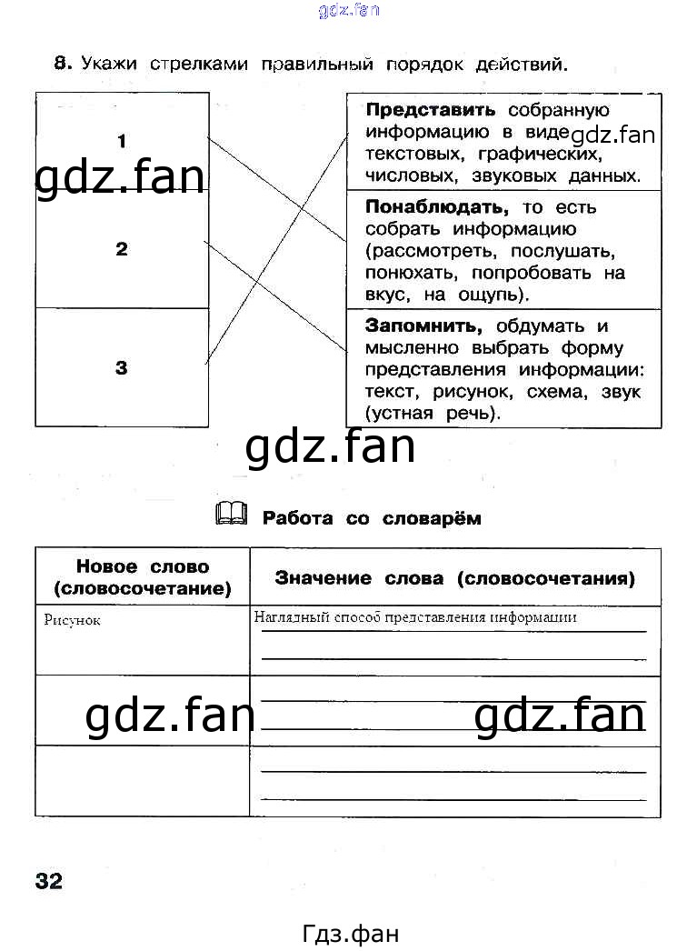 Проверка домашнего задания всегда занимает большое количество времени. На помощь приходит ГДЗ фан по Информатике третьего класса. Здесь собраны популярные ответы на 32 (задание 8, работа со словарем) Информатика 3 класс рабочая тетрадь Матвеева Н.В.