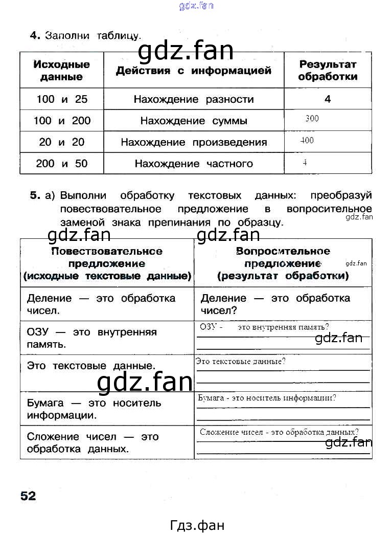 Проверка домашнего задания всегда занимает большое количество времени. На помощь приходит ГДЗ фан по Информатике третьего класса. Здесь собраны популярные ответы на 52 (задание 4, 5) Информатика 3 класс рабочая тетрадь Матвеева Н.В.