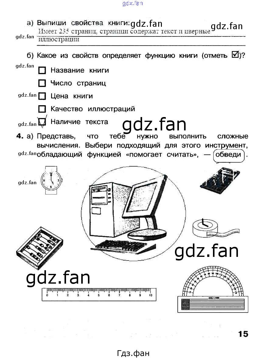 Проверка домашнего задания всегда занимает большое количество времени. На помощь приходит ГДЗ фан по Информатике третьего класса. Здесь собраны популярные ответы на 15 (задание 4) Информатика 3 класс рабочая тетрадь Матвеева Н.В.