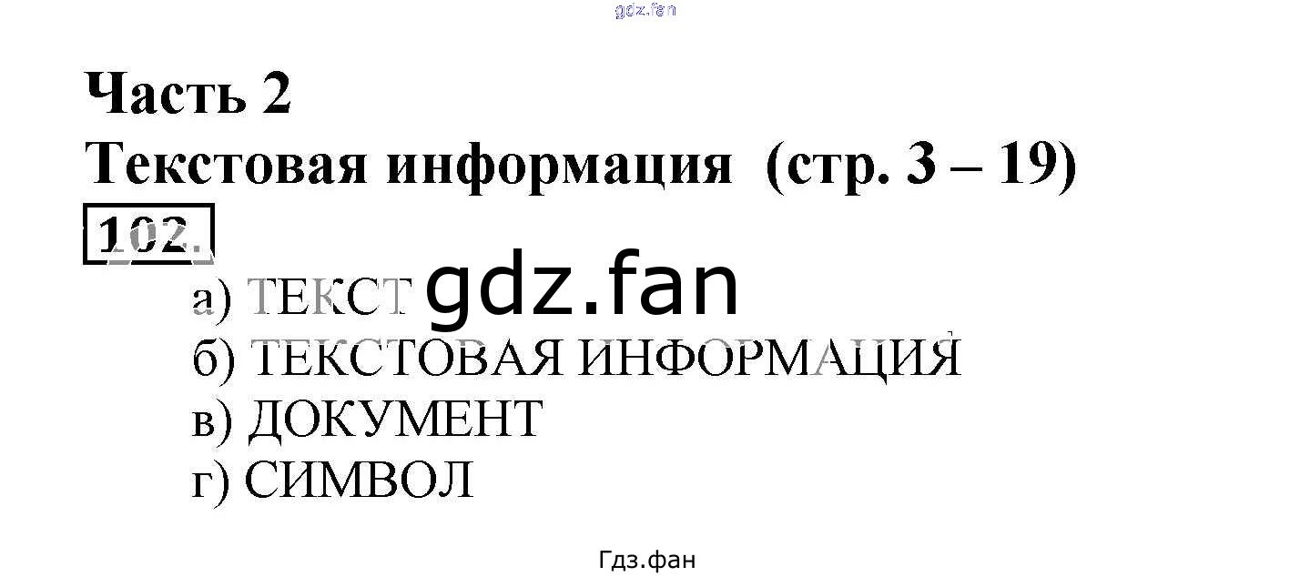 Проверка домашнего задания всегда занимает большое количество времени. На помощь приходит ГДЗ фан по Информатике пятого класса. Здесь собраны популярные ответы на 102 (стр. 4) Информатика 5 класс рабочая тетрадь Босова