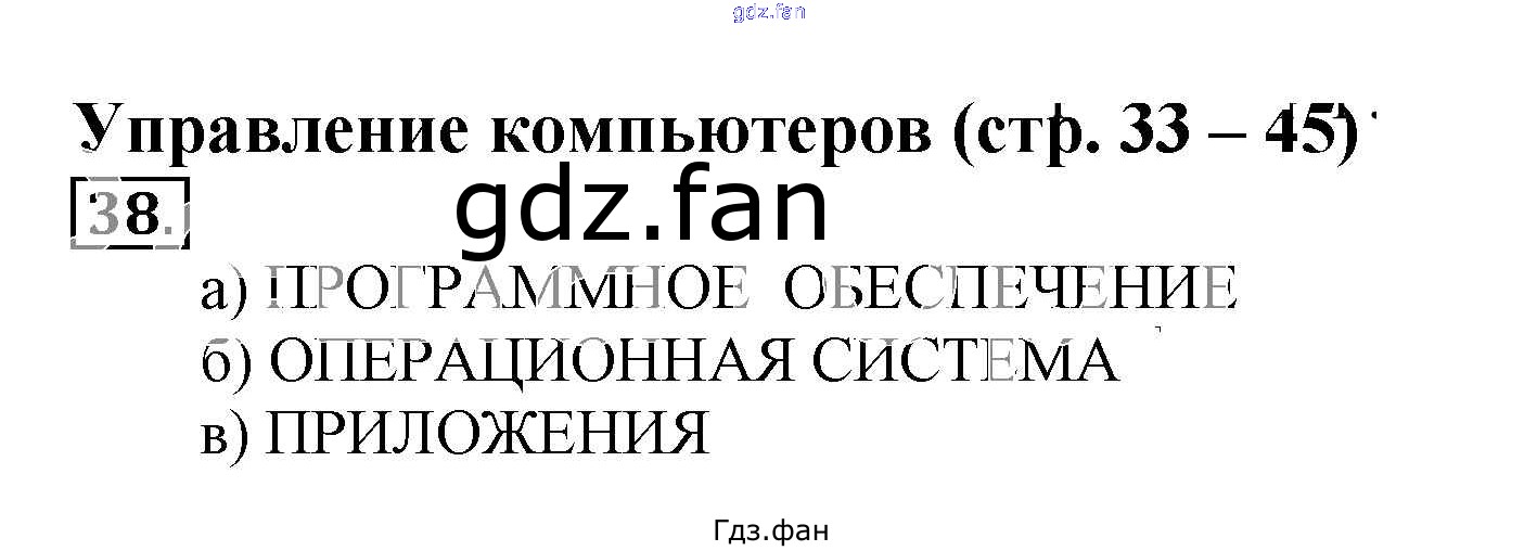 Проверка домашнего задания всегда занимает большое количество времени. На помощь приходит ГДЗ фан по Информатике пятого класса. Здесь собраны популярные ответы на 38 (стр. 33) Информатика 5 класс рабочая тетрадь Босова