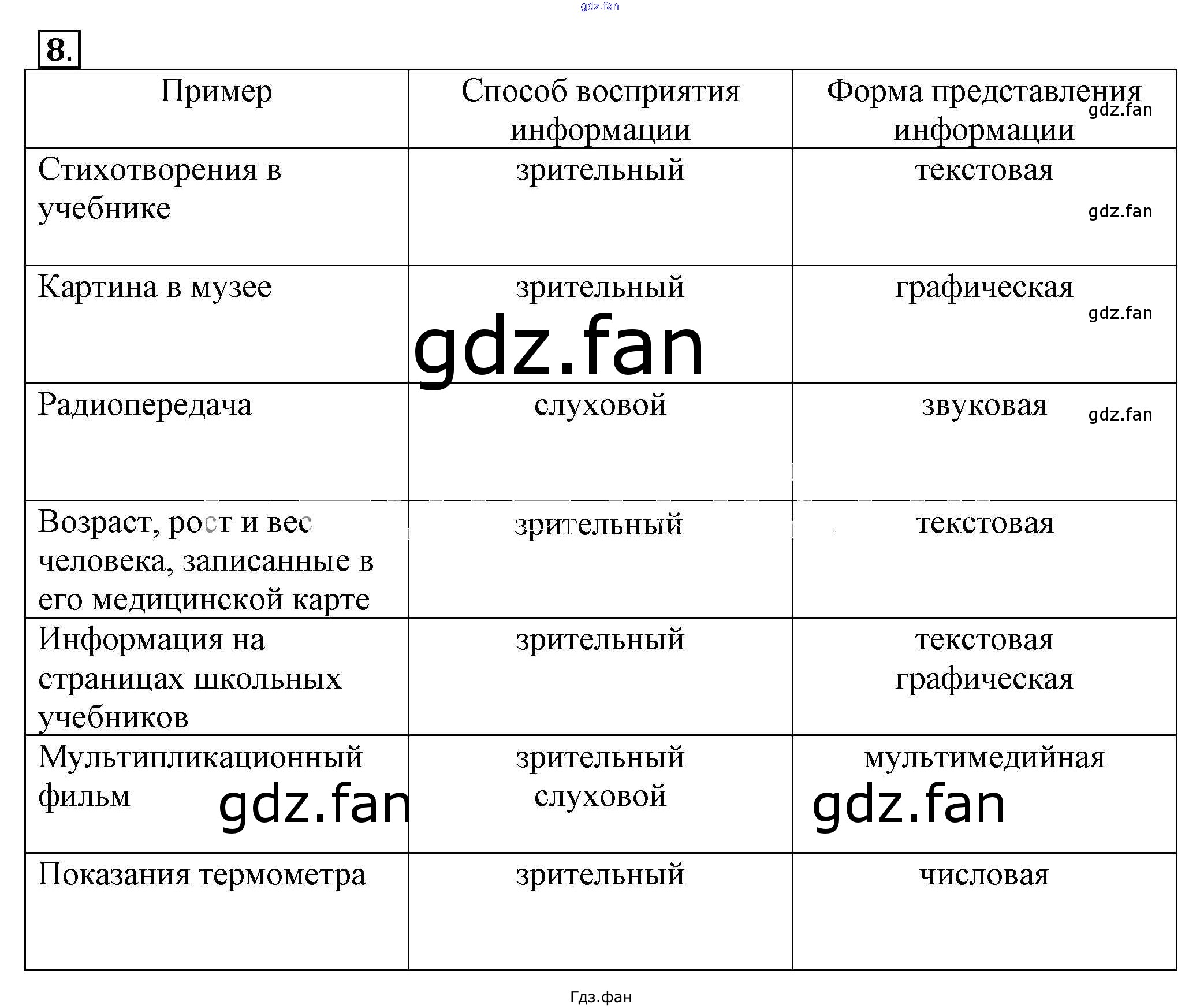 Проверка домашнего задания всегда занимает большое количество времени. На помощь приходит ГДЗ фан по Информатике пятого класса. Здесь собраны популярные ответы на 8 (стр. 10) Информатика 5 класс рабочая тетрадь Босова