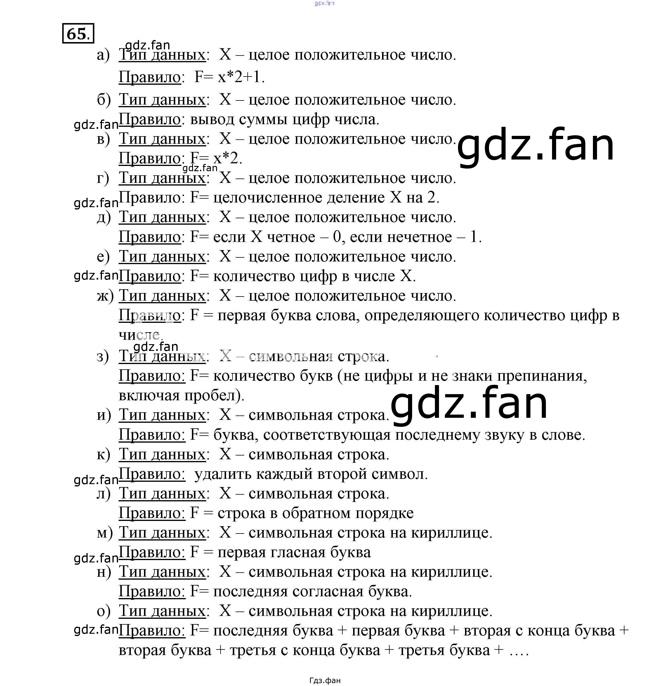 Проверка домашнего задания всегда занимает большое количество времени. На помощь приходит ГДЗ фан по Информатике шестого класса. Здесь собраны популярные ответы на 65 (стр. 59-63) Информатика 6 класс рабочая тетрадь Босова Л.Л.