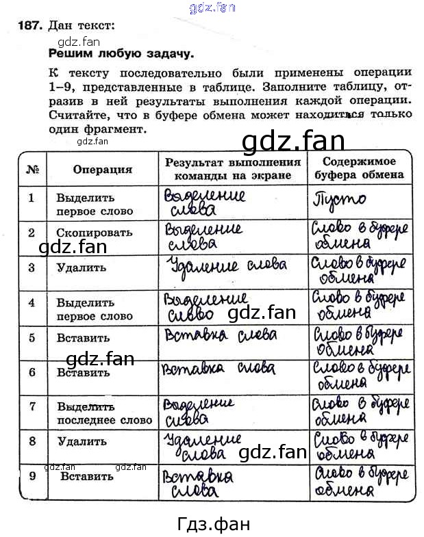 Проверка домашнего задания всегда занимает большое количество времени. На помощь приходит ГДЗ фан по Информатике седьмого класса. Здесь собраны популярные ответы на 187 (стр. 39) Информатика 7 класс рабочая тетрадь Босова Л.Л.