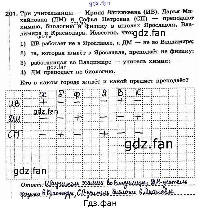 Проверка домашнего задания всегда занимает большое количество времени. На помощь приходит ГДЗ фан по Информатике седьмого класса. Здесь собраны популярные ответы на 201 (стр. 51) Информатика 7 класс рабочая тетрадь Босова Л.Л.