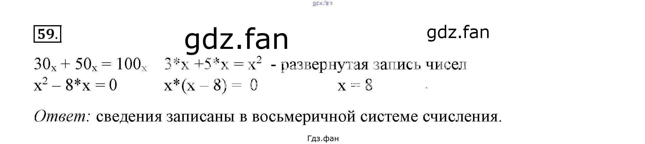 Проверка домашнего задания всегда занимает большое количество времени. На помощь приходит ГДЗ фан по Информатике восьмого класса. Здесь собраны популярные ответы на 59 (стр. 40) Информатика 8 класс рабочая тетрадь Босова Л.Л.