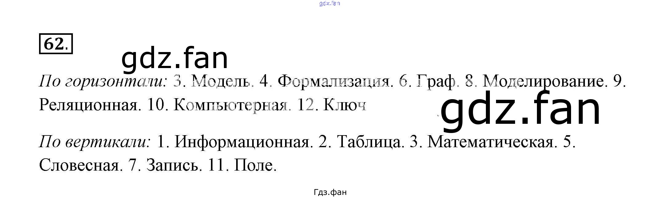 Проверка домашнего задания всегда занимает большое количество времени. На помощь приходит ГДЗ фан по Информатике девятого класса. Здесь собраны популярные ответы на 62 (стр. 62-63) Информатика 9 класс рабочая тетрадь Босова Л.Л.