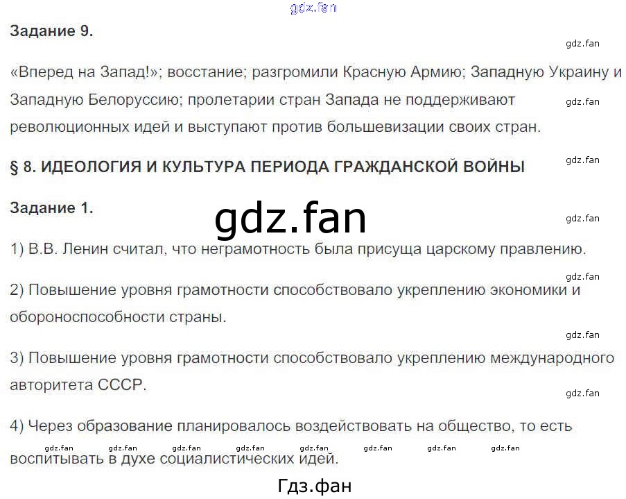 Проверка домашнего задания всегда занимает большое количество времени. На помощь приходит ГДЗ фан по Истории десятого класса. Здесь собраны популярные ответы на 37 (№ 9. §8. Идеология и Культура периода гражданской войны № 1) История России 10 класс рабочая тетрадь Данилов А.А.