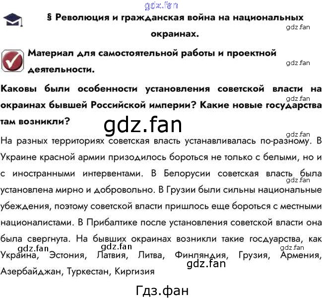 революция и Гражданская война на национальных окраинах. / вопрос в начале параграфа / стр. 70