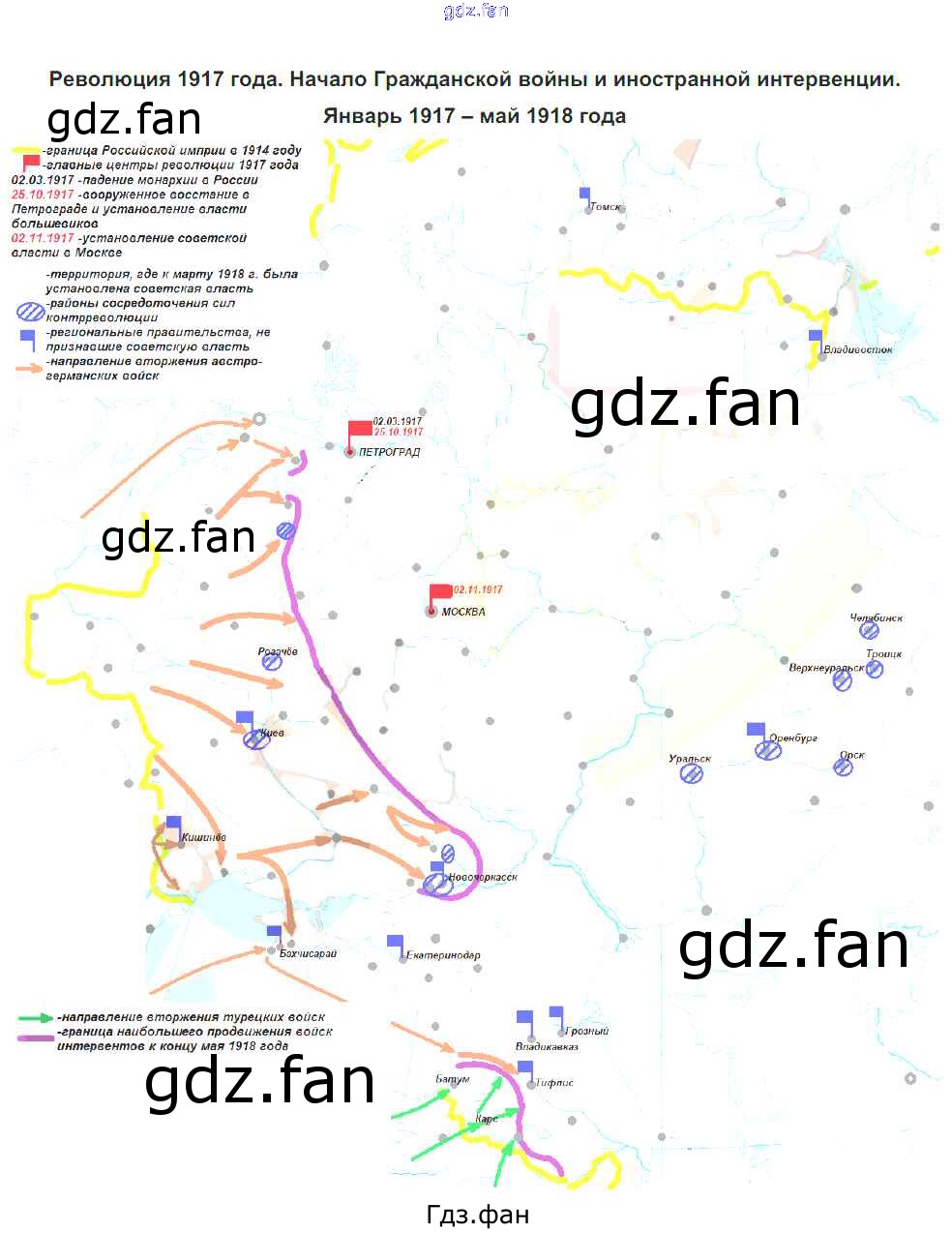Проверка домашнего задания всегда занимает большое количество времени. На помощь приходит ГДЗ фан по Истории десятого класса. Здесь собраны популярные ответы на 5 (Революция 1917 года) История России 10 класс контурные карты Курбский Н.А.