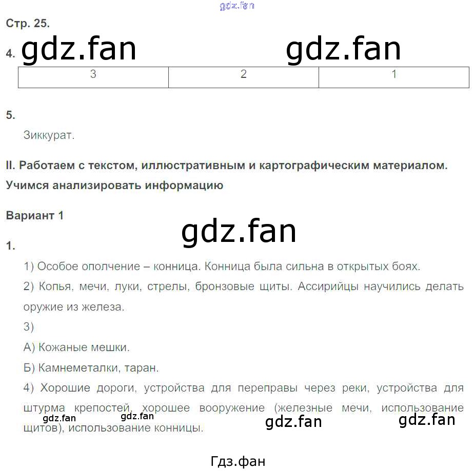 Проверка домашнего задания всегда занимает большое количество времени. На помощь приходит ГДЗ фан по Истории пятого класса. Здесь собраны популярные ответы на 25 (№ 4, 5. Вариант 1 № 1) История Древнего мира 5 класс рабочая тетрадь Чернова М.Н. (к уч. Вигасина)