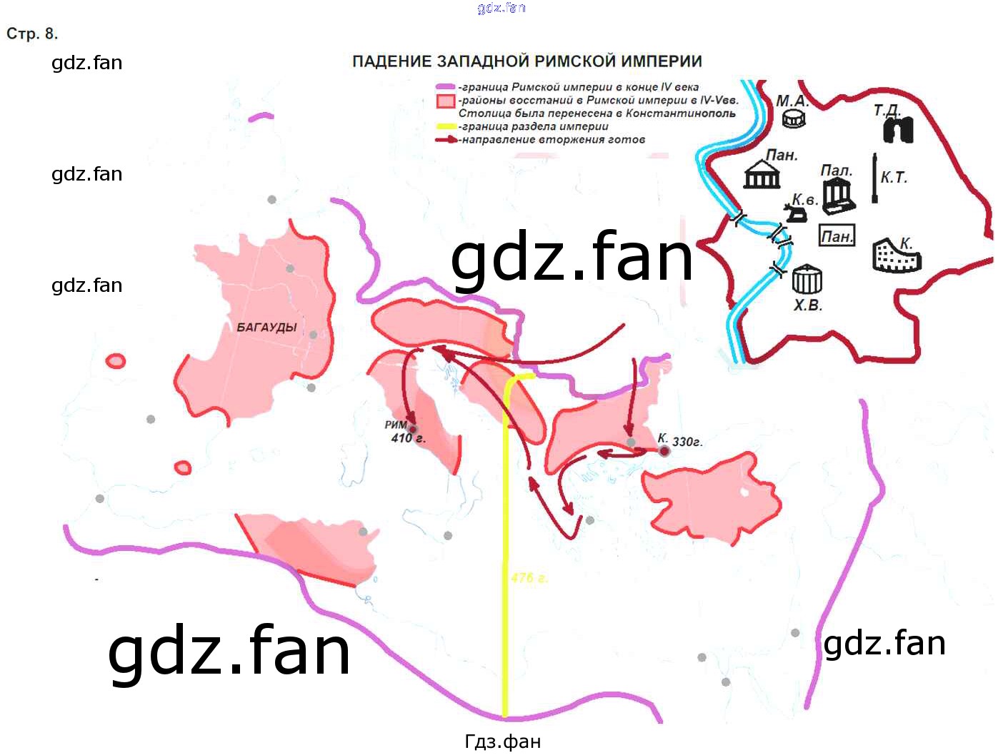 Проверка домашнего задания всегда занимает большое количество времени. На помощь приходит ГДЗ фан по Истории пятого класса. Здесь собраны популярные ответы на 8 (Падение Западной Римской империи) История История Древнего мира 5 класс Атлас с комплектом контурных карт Стоялова Н.Д.