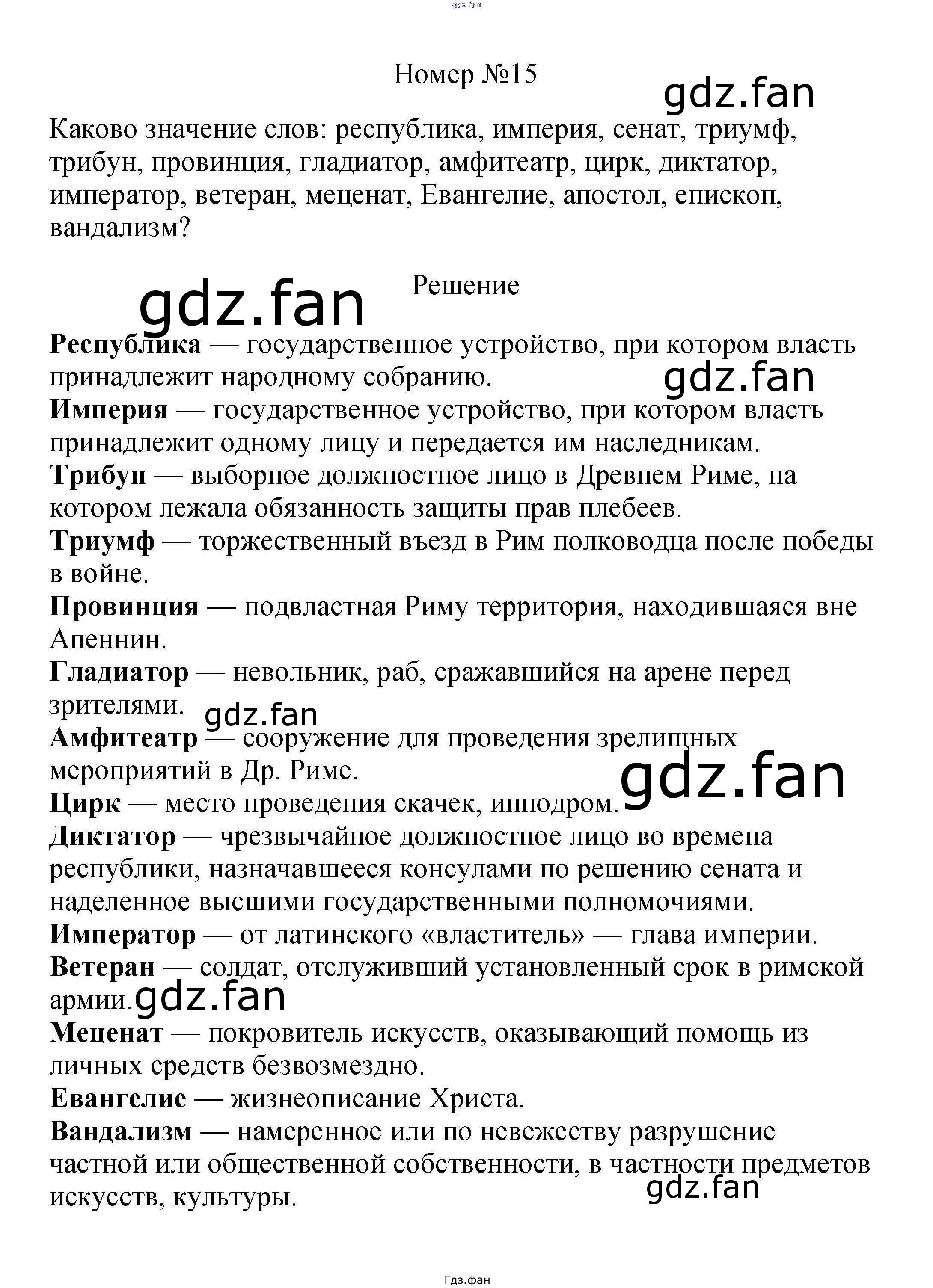 Проверка домашнего задания всегда занимает большое количество времени. На помощь приходит ГДЗ фан по Истории пятого класса. Здесь собраны популярные ответы на 15 (стр. 281) История Древнего мира 5 класс Вигасин А.А.