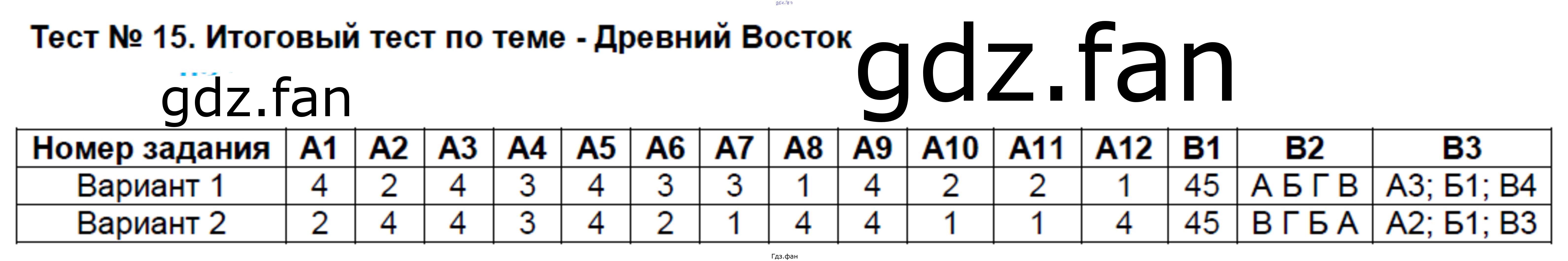 Проверка домашнего задания всегда занимает большое количество времени. На помощь приходит ГДЗ фан по Истории пятого класса. Здесь собраны популярные ответы на Тест №15 (стр. 38-43) Всеобщая история. История Древнего мира 5 класс контрольно-измерительные материалы Волкова К.В.