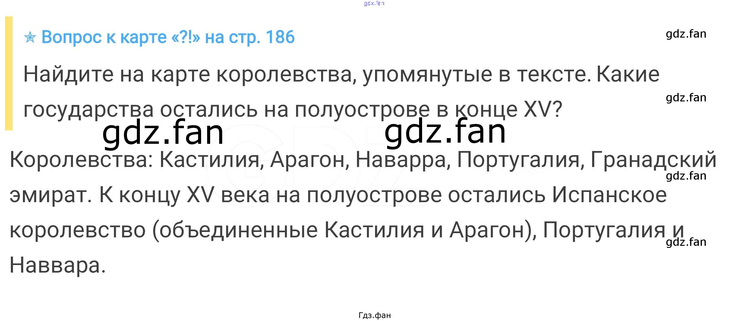 Проверка домашнего задания всегда занимает большое количество времени. На помощь приходит ГДЗ фан по Истории шестого класса. Здесь собраны популярные ответы на стр. 186 Всеобщая история. История средних веков 6 класс Агибалова Е.В.