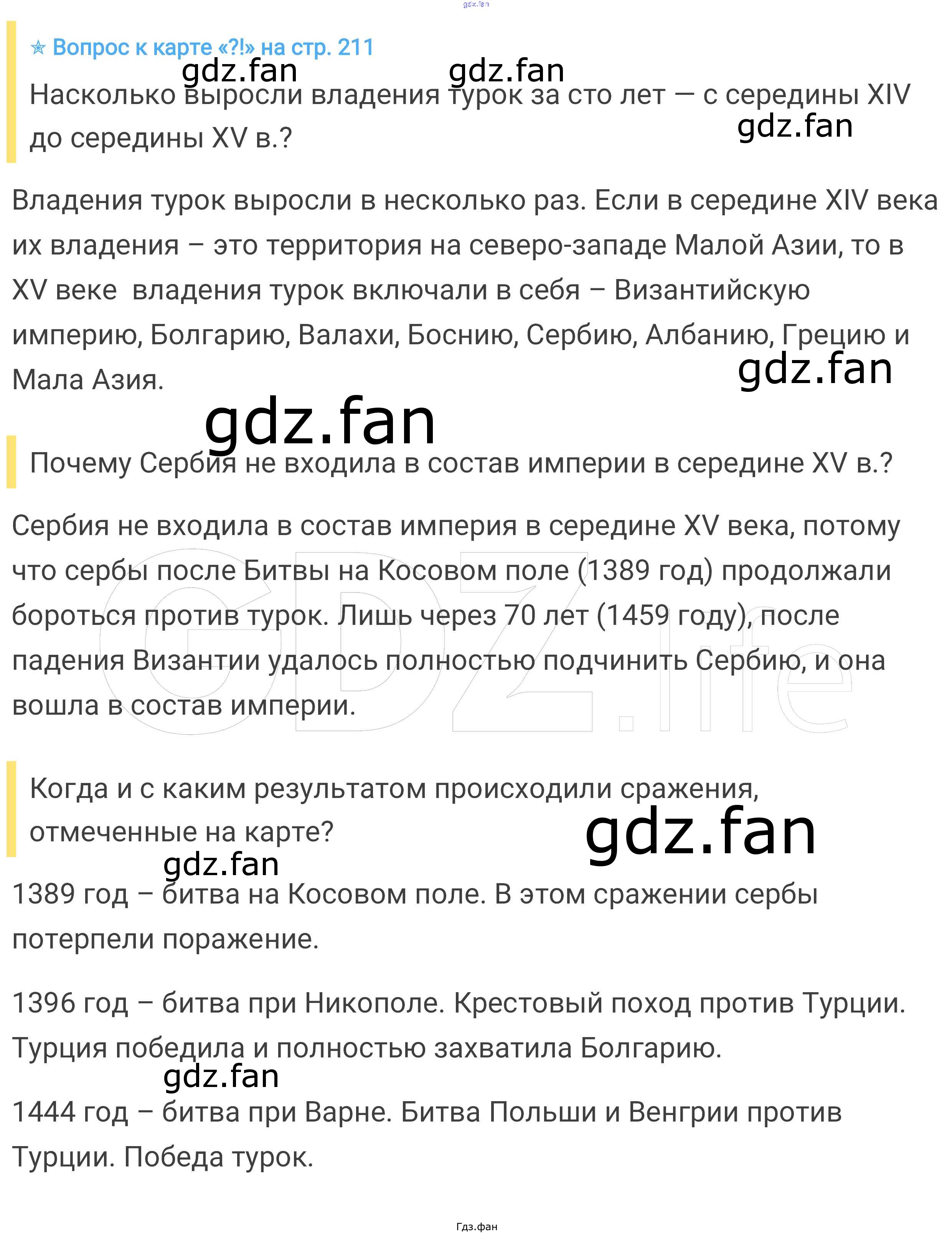 Проверка домашнего задания всегда занимает большое количество времени. На помощь приходит ГДЗ фан по Истории шестого класса. Здесь собраны популярные ответы на стр. 211 Всеобщая история. История средних веков 6 класс Агибалова Е.В.