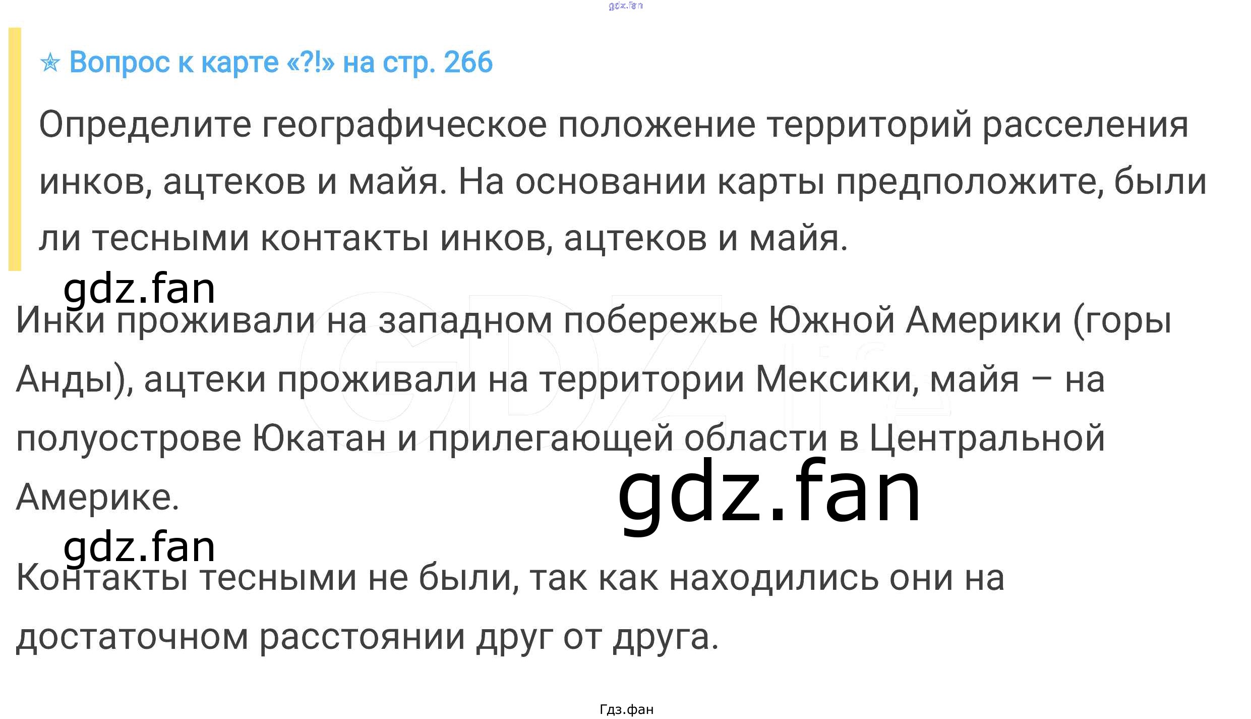 Проверка домашнего задания всегда занимает большое количество времени. На помощь приходит ГДЗ фан по Истории шестого класса. Здесь собраны популярные ответы на стр. 266 Всеобщая история. История средних веков 6 класс Агибалова Е.В.