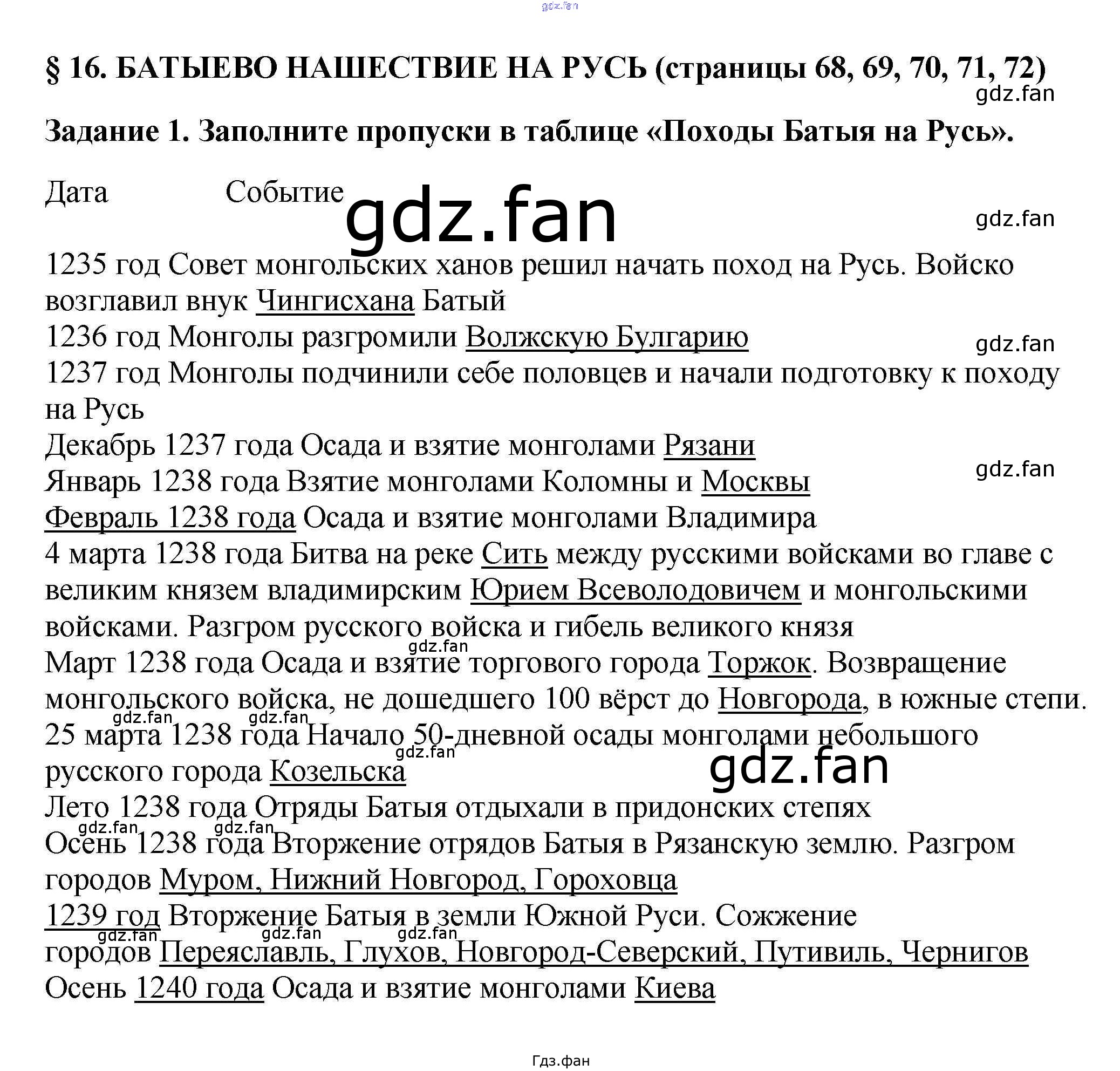 Проверка домашнего задания всегда занимает большое количество времени. На помощь приходит ГДЗ фан по Истории шестого класса. Здесь собраны популярные ответы на 68 (№ 1) История России 6 класс рабочая тетрадь Артасов И.А.