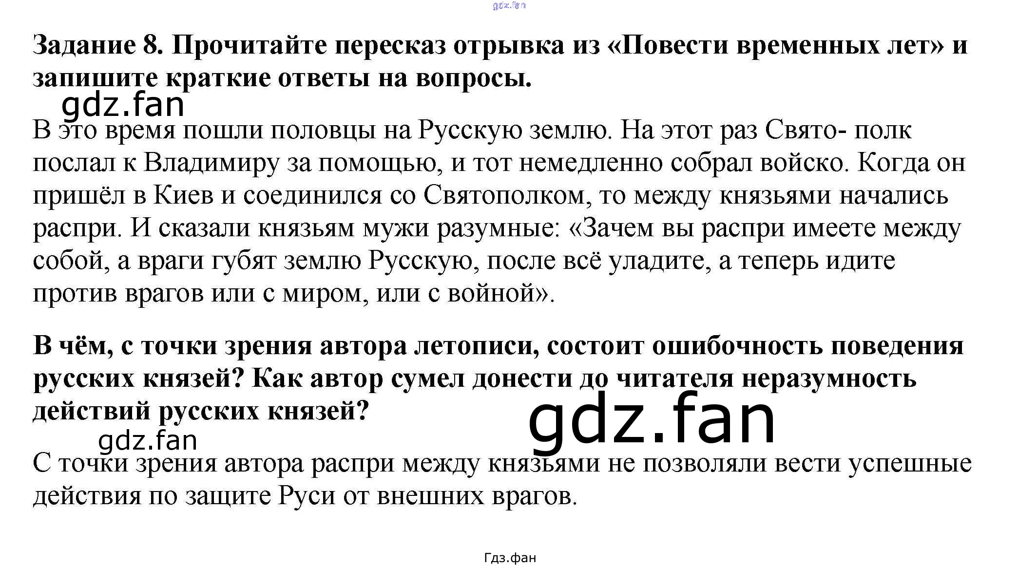 Проверка домашнего задания всегда занимает большое количество времени. На помощь приходит ГДЗ фан по Истории шестого класса. Здесь собраны популярные ответы на 35 (№ 8) История России 6 класс рабочая тетрадь Артасов И.А.