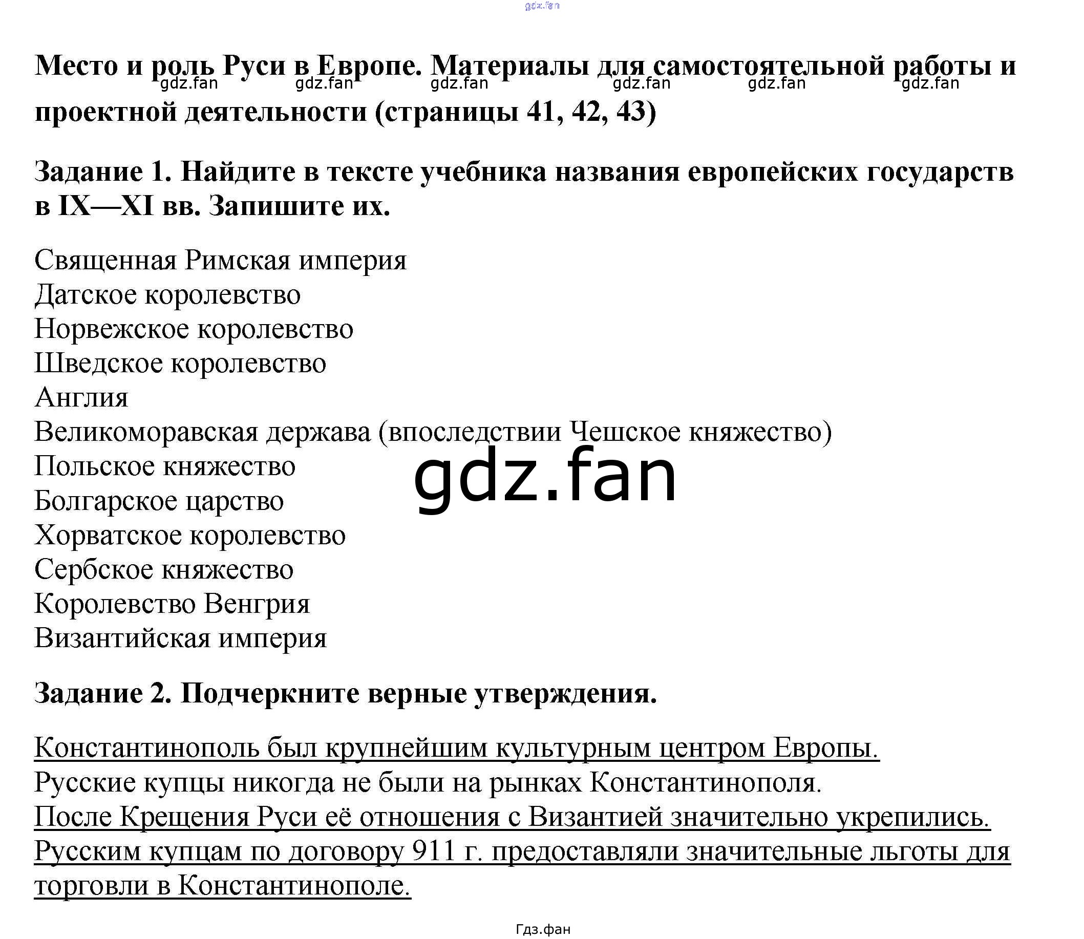 Проверка домашнего задания всегда занимает большое количество времени. На помощь приходит ГДЗ фан по Истории шестого класса. Здесь собраны популярные ответы на 41 (Место и роль Руси в Европе № 1, 2) История России 6 класс рабочая тетрадь Артасов И.А.
