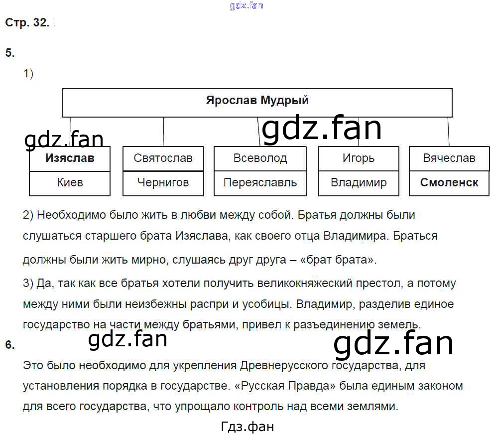 Проверка домашнего задания всегда занимает большое количество времени. На помощь приходит ГДЗ фан по Истории шестого класса. Здесь собраны популярные ответы на 32 (№ 5, 6) История России 6 класс рабочая тетрадь Баранов П.А.