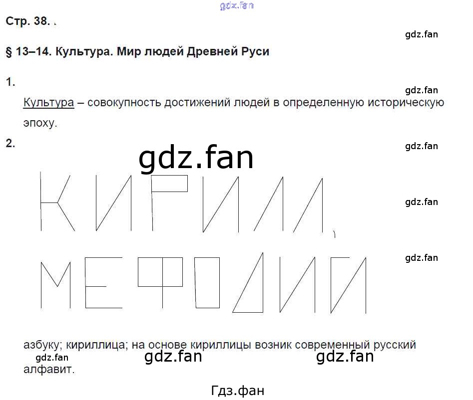 Проверка домашнего задания всегда занимает большое количество времени. На помощь приходит ГДЗ фан по Истории шестого класса. Здесь собраны популярные ответы на 38 (§13-14 № 1, 2) История России 6 класс рабочая тетрадь Баранов П.А.
