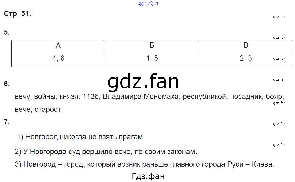 Проверка домашнего задания всегда занимает большое количество времени. На помощь приходит ГДЗ фан по Истории шестого класса. Здесь собраны популярные ответы на 51 (№ 5, 6, 7) История России 6 класс рабочая тетрадь Баранов П.А.