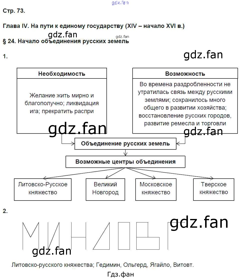 Проверка домашнего задания всегда занимает большое количество времени. На помощь приходит ГДЗ фан по Истории шестого класса. Здесь собраны популярные ответы на 73 (§24 № 1, 2) История России 6 класс рабочая тетрадь Баранов П.А.
