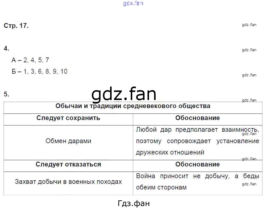 Проверка домашнего задания всегда занимает большое количество времени. На помощь приходит ГДЗ фан по Истории шестого класса. Здесь собраны популярные ответы на 17 (№ 4, 5) История Средних веков 6 класс рабочая тетрадь Баранов П.А.