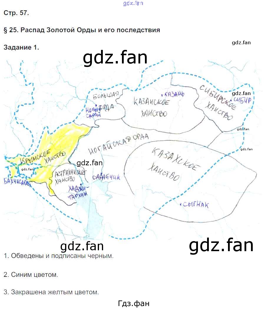 Проверка домашнего задания всегда занимает большое количество времени. На помощь приходит ГДЗ фан по Истории шестого класса. Здесь собраны популярные ответы на 57 (§25. Распад Золотой Орды и его последствия № 1) История России 6 класс рабочая тетрадь Чернова М.Н. (к уч. Торкунова)