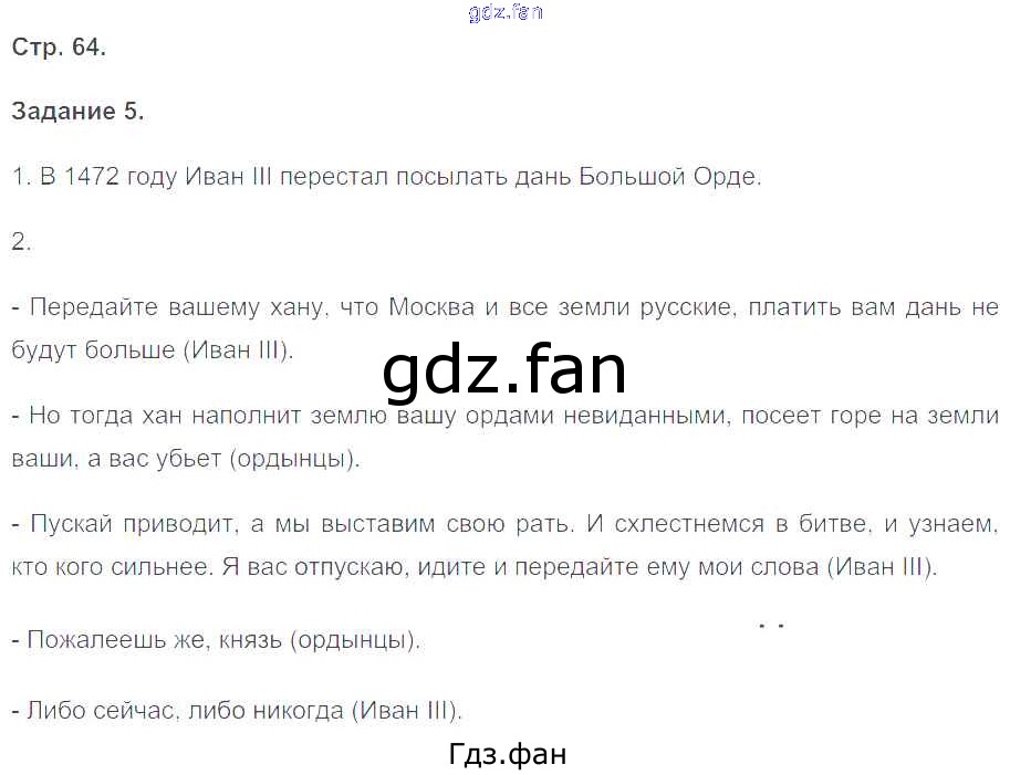 Проверка домашнего задания всегда занимает большое количество времени. На помощь приходит ГДЗ фан по Истории шестого класса. Здесь собраны популярные ответы на 64 (№ 5) История России 6 класс рабочая тетрадь Чернова М.Н. (к уч. Торкунова)