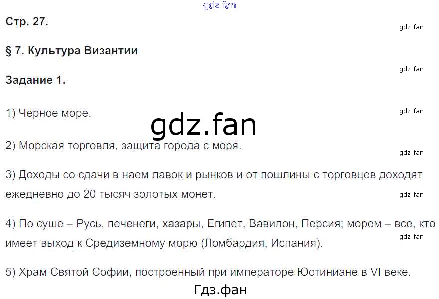 Проверка домашнего задания всегда занимает большое количество времени. На помощь приходит ГДЗ фан по Истории шестого класса. Здесь собраны популярные ответы на 27 (§7. Культура Византии № 1) История Средних веков 6 класс рабочая тетрадь Чернова М.Н. (к уч. Агибаловой)
