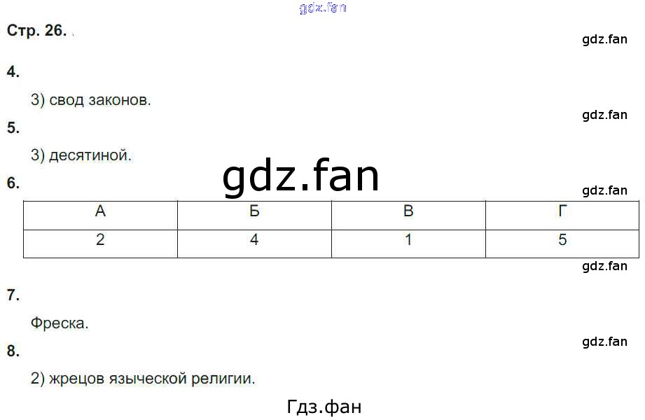 Проверка домашнего задания всегда занимает большое количество времени. На помощь приходит ГДЗ фан по Истории шестого класса. Здесь собраны популярные ответы на 26 (№ 4, 5, 6, 7, 8) История России 6 класс рабочая тетрадь Гевуркова Е.А. (к уч.Торкунова)