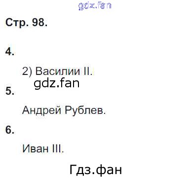 Проверка домашнего задания всегда занимает большое количество времени. На помощь приходит ГДЗ фан по Истории шестого класса. Здесь собраны популярные ответы на 98 (№ 4, 5, 6) История России 6 класс рабочая тетрадь Гевуркова Е.А. (к уч.Торкунова)