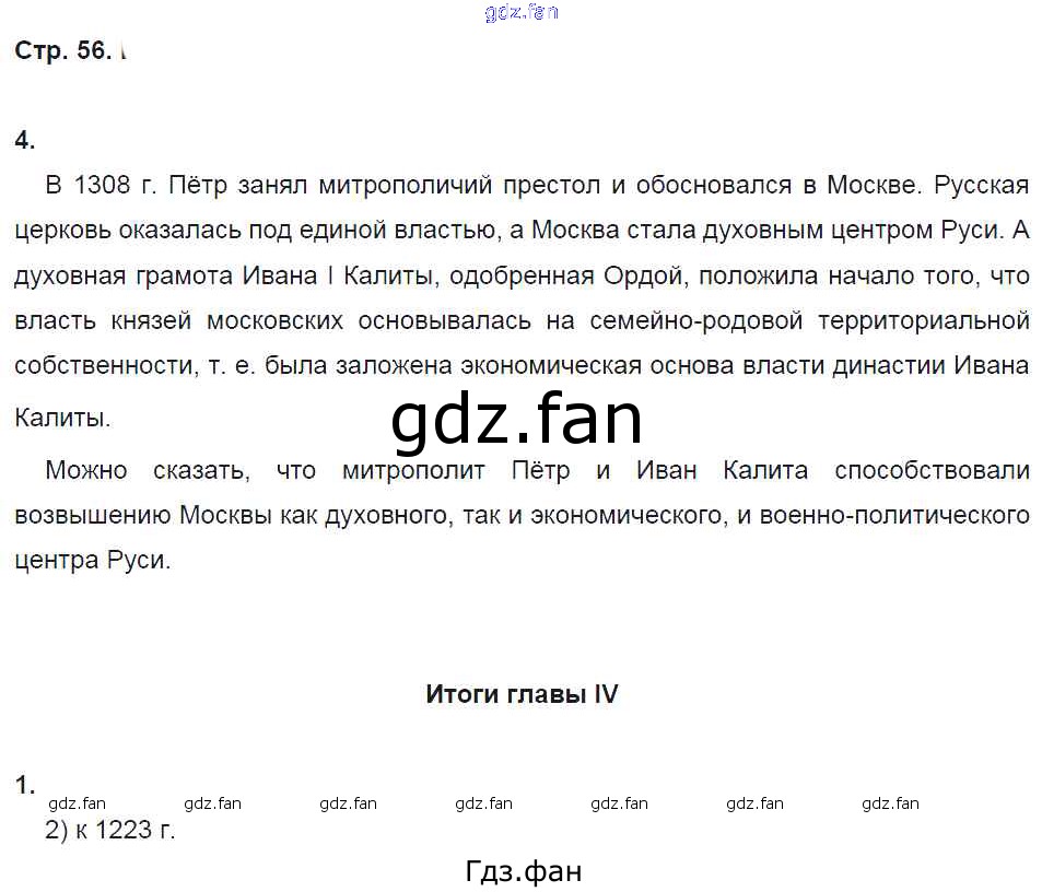 Проверка домашнего задания всегда занимает большое количество времени. На помощь приходит ГДЗ фан по Истории шестого класса. Здесь собраны популярные ответы на 56 (№ 4. итоги главы 4 № 1) История России 6 класс рабочая тетрадь Клоков В.А. (к уч. Андреева)