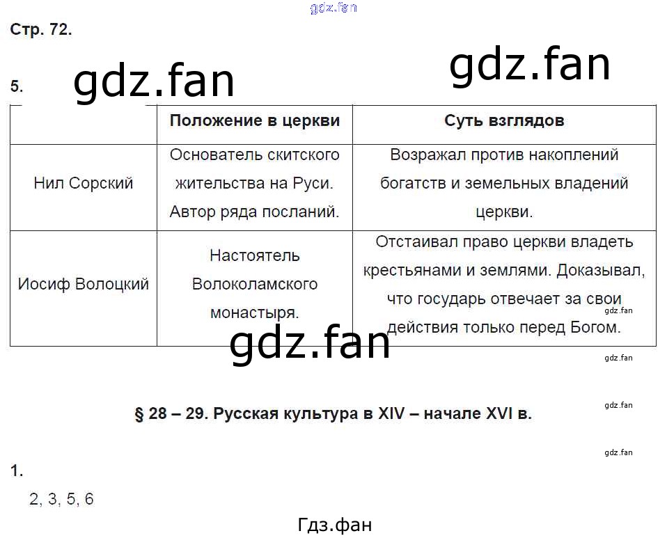 Проверка домашнего задания всегда занимает большое количество времени. На помощь приходит ГДЗ фан по Истории шестого класса. Здесь собраны популярные ответы на 72 (№ 5. §28-29 № 1) История России 6 класс рабочая тетрадь Клоков В.А. (к уч. Андреева)