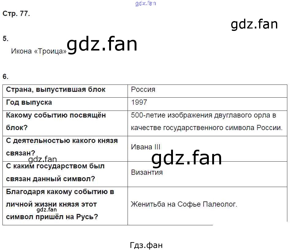 Проверка домашнего задания всегда занимает большое количество времени. На помощь приходит ГДЗ фан по Истории шестого класса. Здесь собраны популярные ответы на 77 (№ 5, 6) История России 6 класс рабочая тетрадь Клоков В.А. (к уч. Андреева)