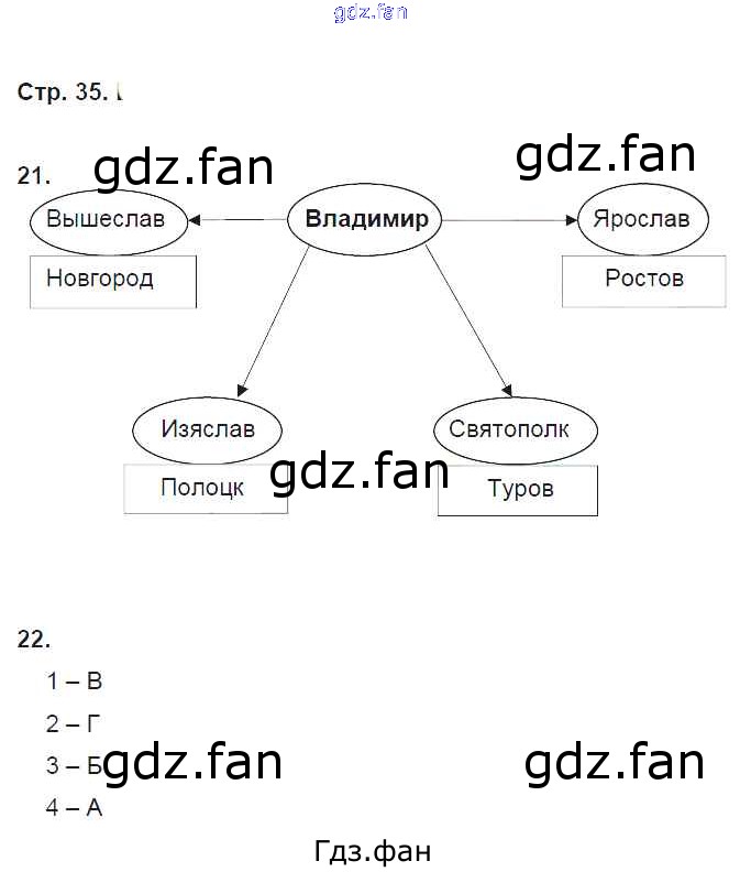 Проверка домашнего задания всегда занимает большое количество времени. На помощь приходит ГДЗ фан по Истории шестого класса. Здесь собраны популярные ответы на 35 (№ 21, 22) История России с древнейших времен до начала XVI века 6 класс рабочая тетрадь Кочегаров К.А. (к уч. Пчелова)