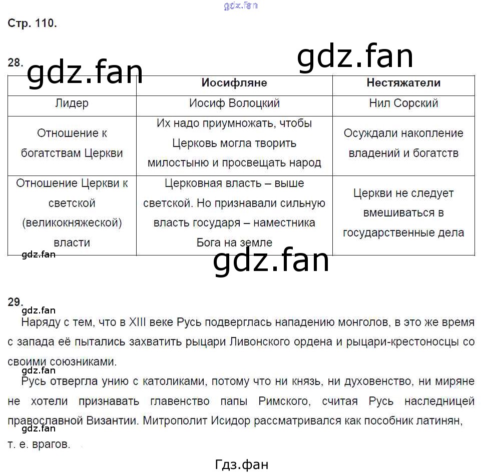 Проверка домашнего задания всегда занимает большое количество времени. На помощь приходит ГДЗ фан по Истории шестого класса. Здесь собраны популярные ответы на 110 (№ 28, 29) История России с древнейших времен до начала XVI века 6 класс рабочая тетрадь Кочегаров К.А. (к уч. Пчелова)