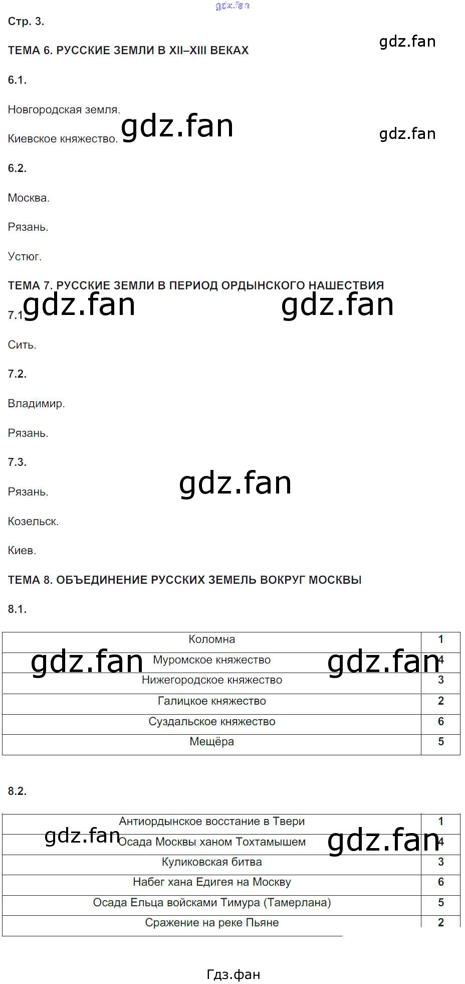 Проверка домашнего задания всегда занимает большое количество времени. На помощь приходит ГДЗ фан по Истории шестого класса. Здесь собраны популярные ответы на 3 (тема 6, 7, 8) История России 6 класс Контурные карты с заданиями Колпаков С.В.