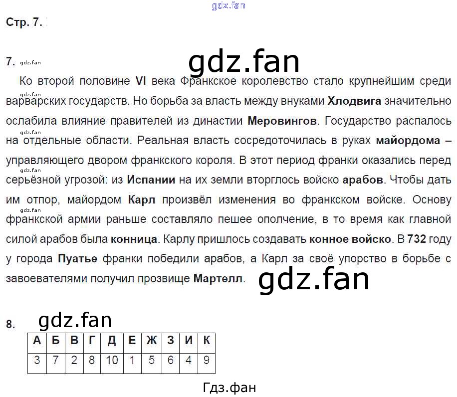 Проверка домашнего задания всегда занимает большое количество времени. На помощь приходит ГДЗ фан по Истории шестого класса. Здесь собраны популярные ответы на 7 (№ 7, 8) Всеобщая история. История Средних веков 6 класс рабочая тетрадь с контурными картами Колпаков С.В. (к уч. Пономарева)